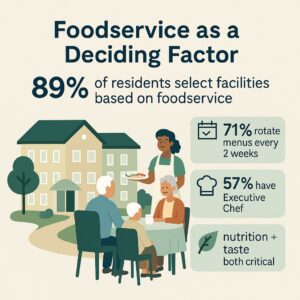 - Foodservice as a differentiator. Nearly nine in ten residents considered food a deciding factor when selecting a community.